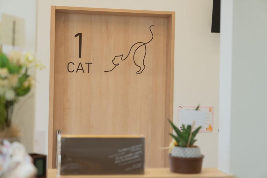 音やにおいに敏感なネコちゃんのために、入口から左手に猫専用の待合スペースをご用意しています。